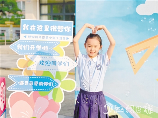 新會華僑實驗第二小學(xué)全新升級的校門成為學(xué)生合影的“打卡”點。
