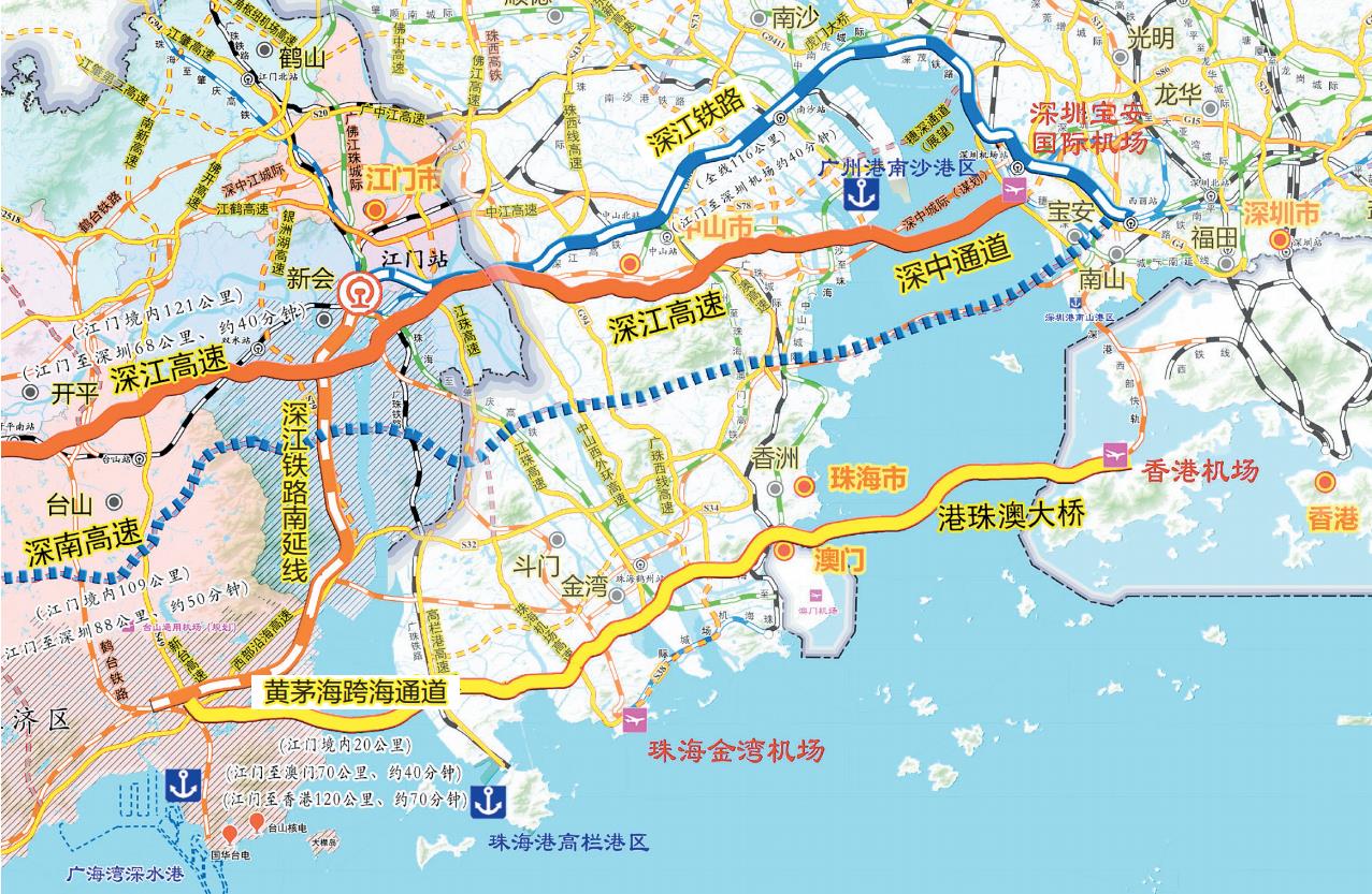????當(dāng)前,江門(mén)在軌道交通方面,已開(kāi)通廣珠鐵路、廣珠城軌、江湛鐵路、南沙港鐵路,深江鐵路、珠肇高鐵正加快建設(shè),廣佛江珠城際正積極開(kāi)展前期工作,江門(mén)站作為珠西綜合交通樞紐的地位不斷鞏固提升;在高速路網(wǎng)方面,已建成通車(chē)廣中江高速、中開(kāi)高速、中江高速改擴(kuò)建等13條高速公路,對(duì)外加快深南高速、南新高速、廣臺(tái)高速江門(mén)臺(tái)山至開(kāi)平段、江肇第二高速等項(xiàng)目前期工作,對(duì)內(nèi)扎實(shí)推進(jìn)江鶴高速改擴(kuò)建、銀洲湖高速等項(xiàng)目建設(shè),已形成“外引內(nèi)聯(lián)”的高速廊道。