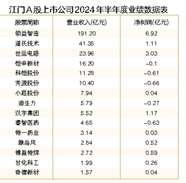 ????上半年A股5340家上市公司實(shí)現(xiàn)營(yíng)收34.89萬(wàn)億元,八成公司實(shí)現(xiàn)盈利。在這一大環(huán)境下,江門15家A股上市公司交出了不俗的成績(jī),營(yíng)收排名前四的領(lǐng)益智造、道氏技術(shù)、世運(yùn)電路和恒申新材,營(yíng)收同比均實(shí)現(xiàn)了雙位數(shù)增長(zhǎng),且4家企業(yè)的總營(yíng)收也遠(yuǎn)超其他上市江企的營(yíng)收總和,為上市江企整體的業(yè)績(jī)?cè)鲩L(zhǎng)奠定了堅(jiān)實(shí)基礎(chǔ)。