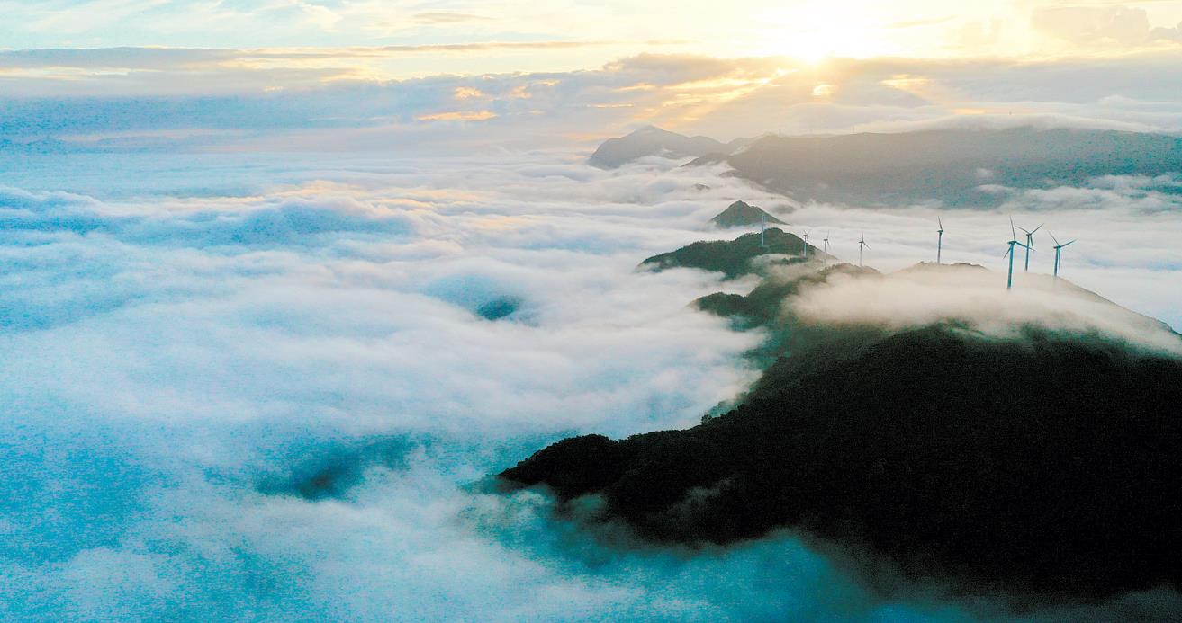 臺(tái)山風(fēng)車(chē)山出現(xiàn)壯美云海奇觀。