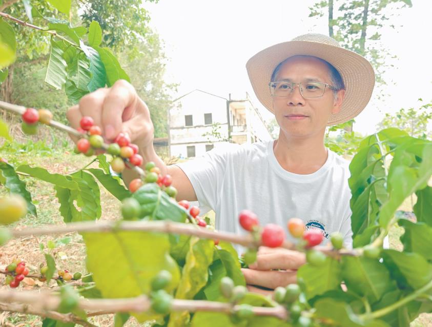 ????昨日,記者在臺(tái)山市端芬鎮(zhèn)廟邊美良村一處咖啡園看到,紅燦燦的咖啡果實(shí)掛滿枝頭。這片咖啡園是由祖籍臺(tái)山的香港人陳健科種植的。6年前,陳健科前往埃塞俄比亞學(xué)習(xí)咖啡種植和處理技術(shù),并帶回300粒高品質(zhì)的咖啡種子在臺(tái)山試種,打造臺(tái)山本土的咖啡種植基地。目前,陳健科在臺(tái)山已成功種植咖啡樹苗兩萬(wàn)株,最早栽種的一批咖啡樹已進(jìn)入了產(chǎn)果季節(jié),其栽種的果樹苗還提供給臺(tái)城、三合鎮(zhèn)、斗山鎮(zhèn)等地的農(nóng)戶栽種。