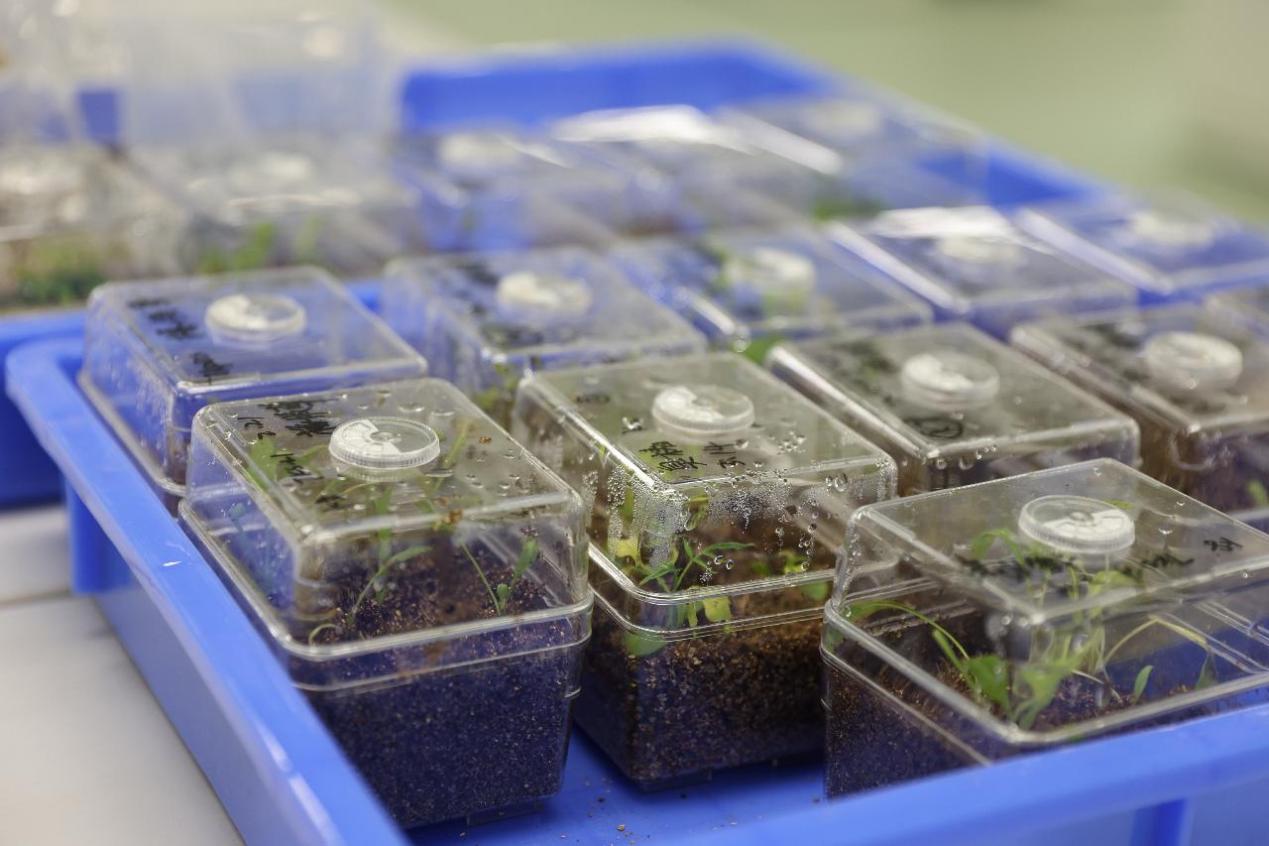 2022年4月10日拍攝的三亞崖州灣科技城種子實驗室的植物幼苗。新華社記者 張麗蕓 攝
