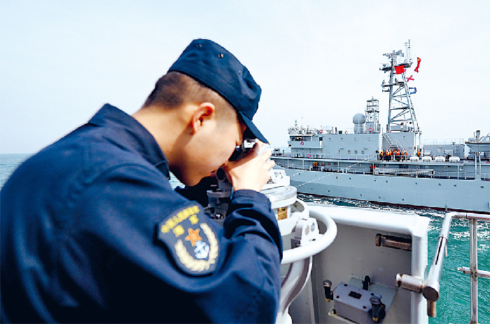 艦艇機(jī)動(dòng)途中開展補(bǔ)給。