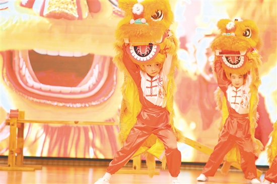 ????率先登場的幼兒園組萌娃們以稚嫩身姿詮釋非遺之美。江海區(qū)實驗幼兒園的《萌獅承藝》以憨態(tài)可掬的獅頭與整齊劃一的鼓點,展現(xiàn)幼童對傳統(tǒng)技藝的初探;新會實驗幼兒園的《萌獅武韻?蔡李雄風》則大膽融合蔡李佛拳招式,小選手揮拳踏步間盡顯剛?cè)岵?/p>