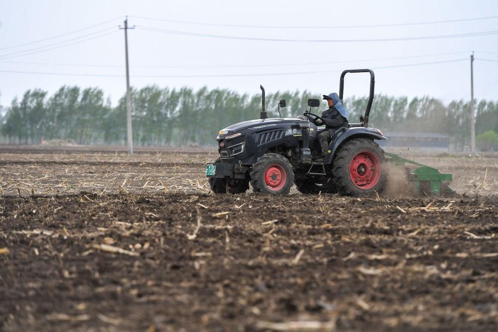 ??△2025年5月,在吉林公主嶺陶家屯鎮(zhèn)馬家店村,農(nóng)民駕駛旋耕機為播種做準備。