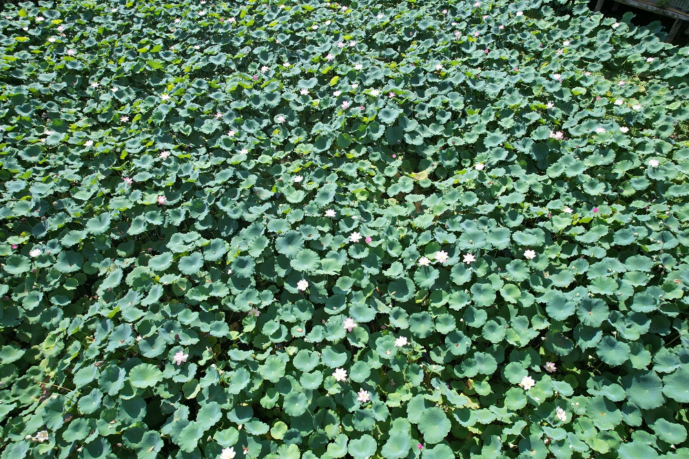 滿塘荷花競相盛開。