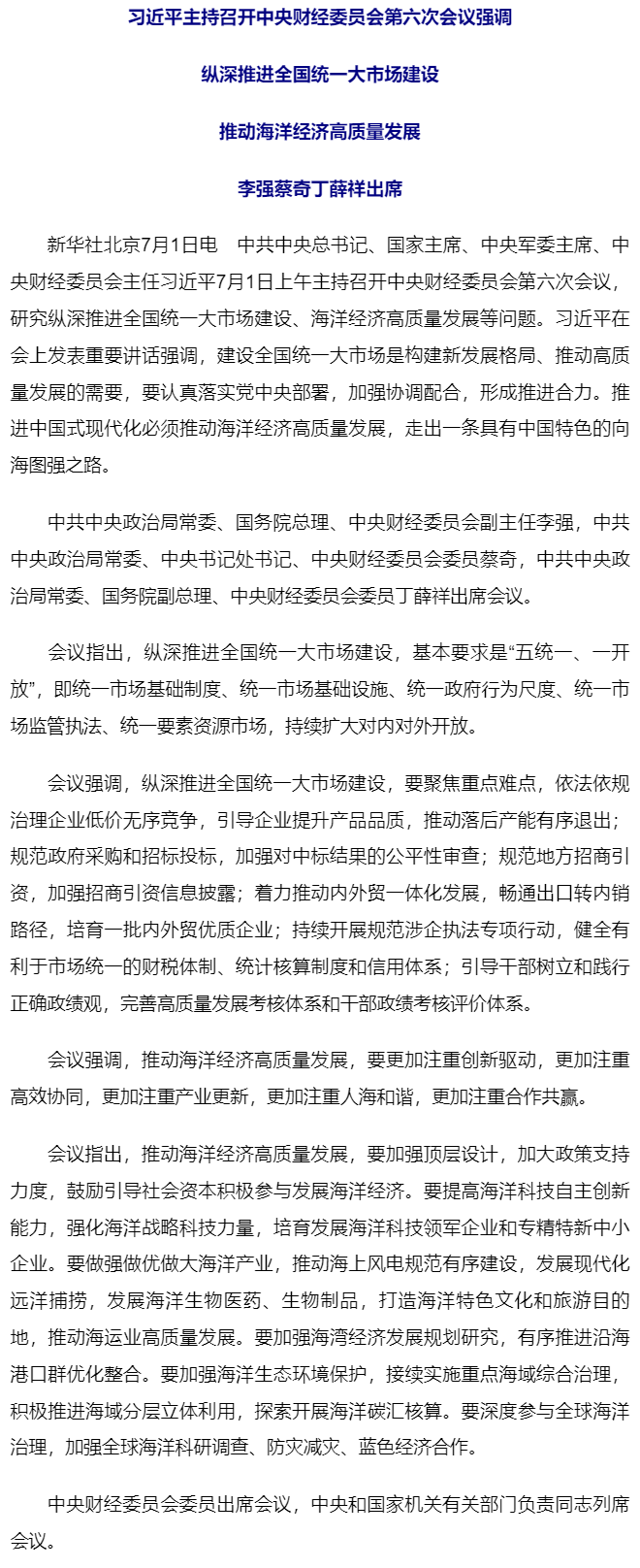 習(xí)近平主持召開中央財(cái)經(jīng)委員會(huì)第六次會(huì)議