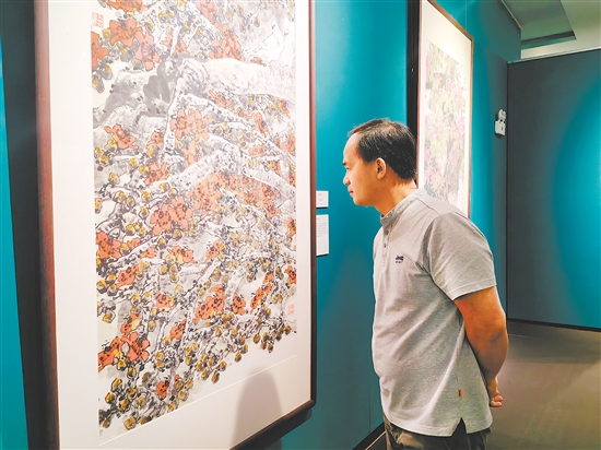 ????來自新會的美術(shù)愛好者張芷君沉浸在作品中,細細觀摩品味?!霸诮T能看到這么多知名畫家的作品,很難得!我是來學(xué)習(xí)的,學(xué)習(xí)名家的風(fēng)格、技法和構(gòu)圖?!彼f,“比如林藍老師的木棉花作品,視覺沖擊力很強,構(gòu)圖也很新穎?!?/p>