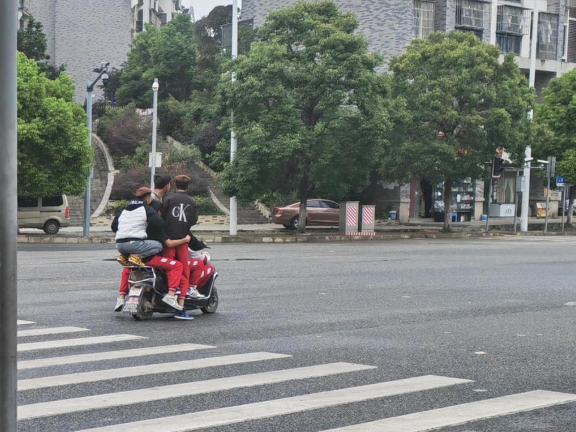 ??2025年5月,在西部某鄉(xiāng)鎮(zhèn)中學(xué)附近,多名未成年人同乘一輛電瓶車(chē)。