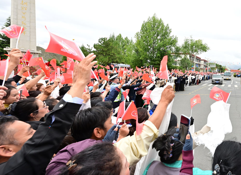 ??人群如潮水涌到道路兩旁,揮舞紅旗、手捧哈達(dá),高呼“扎西德勒”,聲聲祝福是“感恩總書記、感恩黨中央”的由衷表達(dá)。習(xí)近平總書記拉開車窗,微笑著向人群揮手致意。