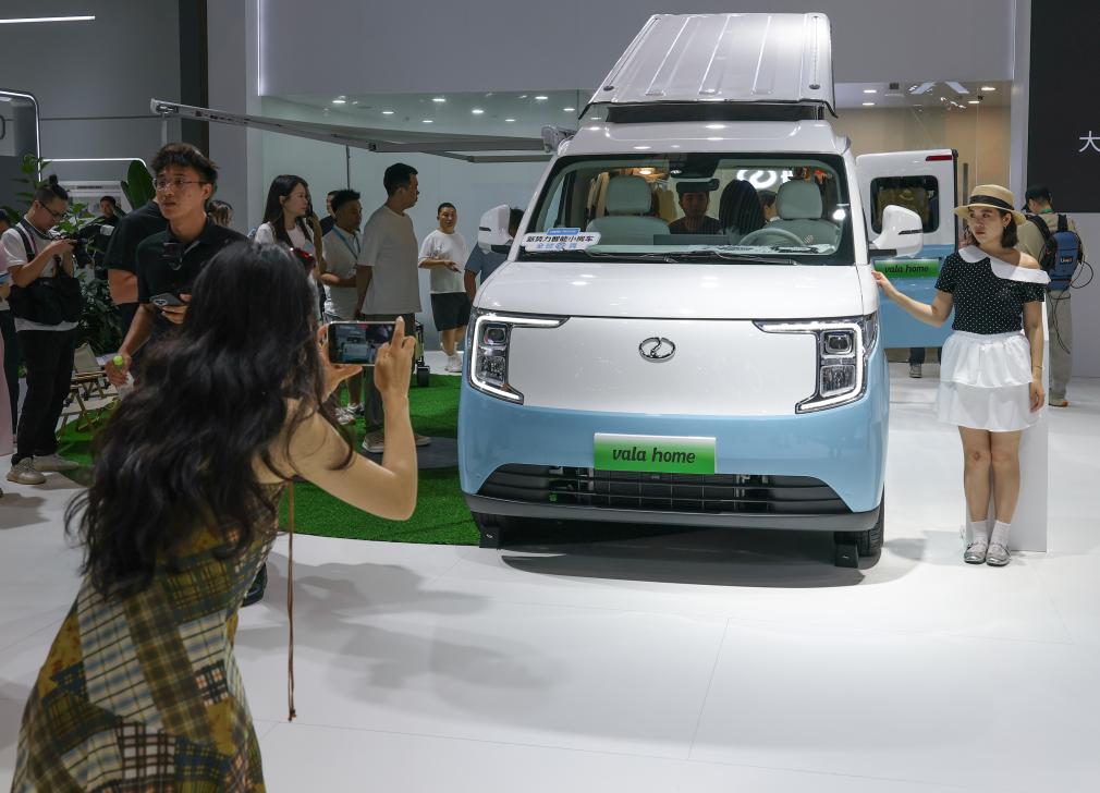 9月5日,觀眾在智博會(huì)現(xiàn)場參觀新能源房車。新華社記者 陳誠 攝
