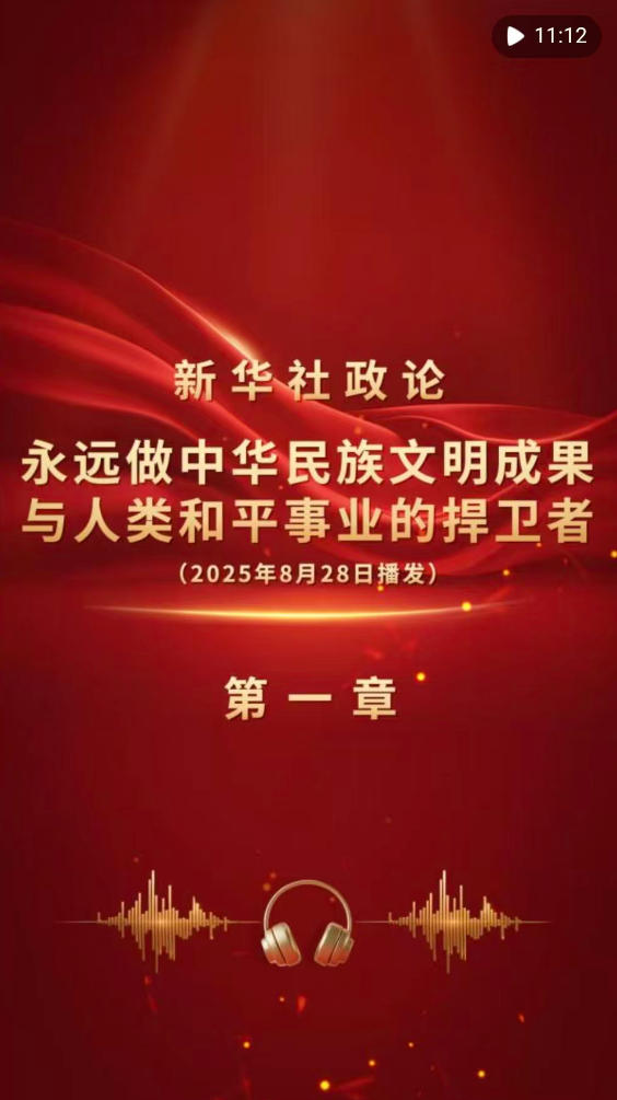 ??新華社8月28日播發(fā)《新華社政論|永遠(yuǎn)做中華民族文明成果與人類(lèi)和平事業(yè)的捍衛(wèi)者——寫(xiě)在中國(guó)人民抗日戰(zhàn)爭(zhēng)暨世界反法西斯戰(zhàn)爭(zhēng)勝利80周年之際》。我們邀請(qǐng)誦讀嘉賓任志宏演播“第一章”。