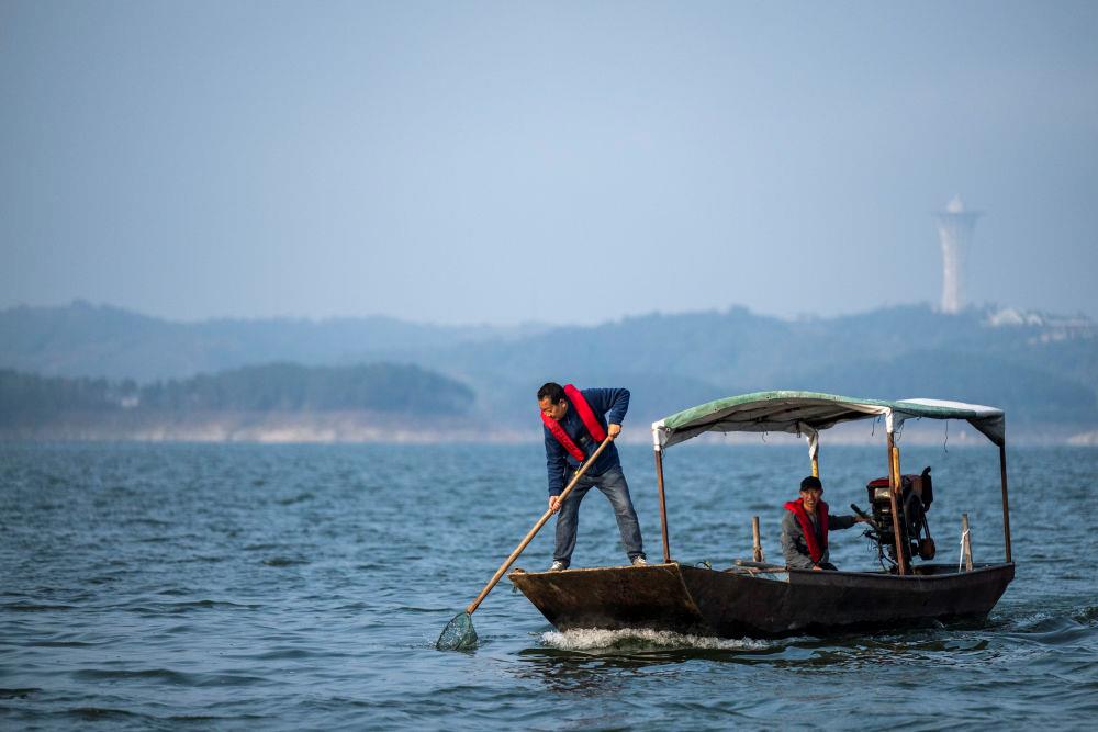 △2024年10月28日,湖北十堰丹江口清漂隊(duì)隊(duì)員在庫(kù)區(qū)進(jìn)行清漂作業(yè)。2023年,丹江口成立“小水滴”守水護(hù)水志愿服務(wù)隊(duì),越來越多人加入守水護(hù)水行列 。