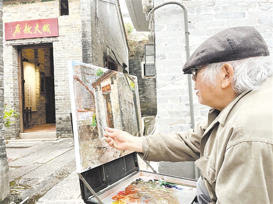 ????與涂志偉一樣,許多畫家都是“回頭客”?!叭ツ陚?cè)重村落大場(chǎng)景,今年新增了海邊、鐵夫故居等地點(diǎn),內(nèi)容題材更豐富多元。去年沒畫好的騎樓,今年找到了絕佳角度,效果超出預(yù)期。”美國(guó)華人油畫家楊軍連續(xù)兩年參與“僑見江門”寫生交流活動(dòng),在他看來(lái),江門保留了騎樓、碉樓等極具嶺南風(fēng)味的創(chuàng)作素材,是藝術(shù)創(chuàng)作的寶貴財(cái)富。