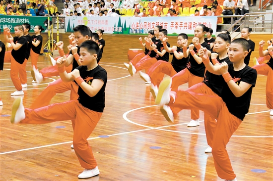 5月30日,2019鶴山市校際詠春拳操比賽暨武術(shù)(詠春拳)段位考評在鶴山市體育館舉行,33所中小學(xué)的1800多名學(xué)生參加比賽,并接受武術(shù)段位考評。