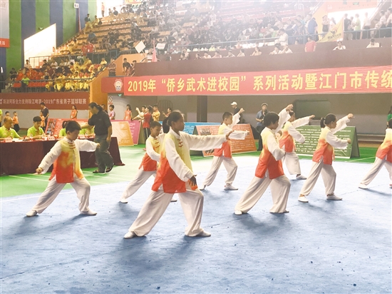 綠色的太極服在推揉間盡展飄逸,橙色的長拳服在舞動間凸顯活潑,黑色的南拳服在拳式下流露剛勁……