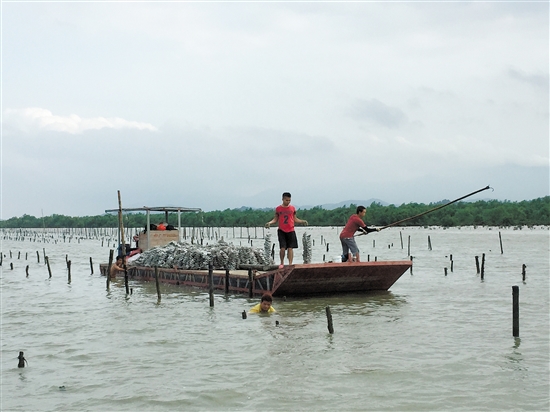 踏入5月,鎮(zhèn)海灣進(jìn)入投放蠔苗的高潮,一艘艘滿載水泥板的大船沿著海灣,在大海上“種下”水泥板,等待秋天的收獲。