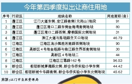 ????市自然資源局分析,第四季度市區(qū)計(jì)劃供應(yīng)10宗商住用地,有不少是屬于位置優(yōu)越、交通便利、配套設(shè)施齊全的優(yōu)質(zhì)地塊。蓬江區(qū)方面主要集中在北新區(qū)、濱江新區(qū)、雙龍片區(qū);江海區(qū)方面主要分布在高新區(qū)、禮樂片區(qū)及江翠路舊改地塊;新會(huì)區(qū)方面的重頭戲依然是樞紐新城片區(qū),該片區(qū)有2宗商住用地計(jì)劃供應(yīng)。