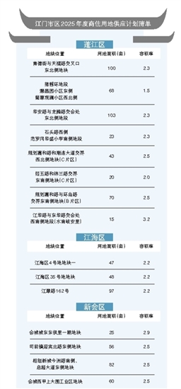 ????與新會(huì)區(qū)相比,蓬江區(qū)最受矚目的莫過于商住用地。蓬江區(qū)2025年計(jì)劃供應(yīng)商住用地442畝,在三區(qū)中最多,共計(jì)8宗。