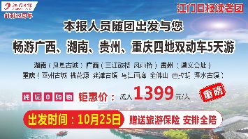 江門日?qǐng)?bào)讀者團(tuán):桂、湘、渝、黔四地動(dòng)車五天游[2018-10-09 19:07]